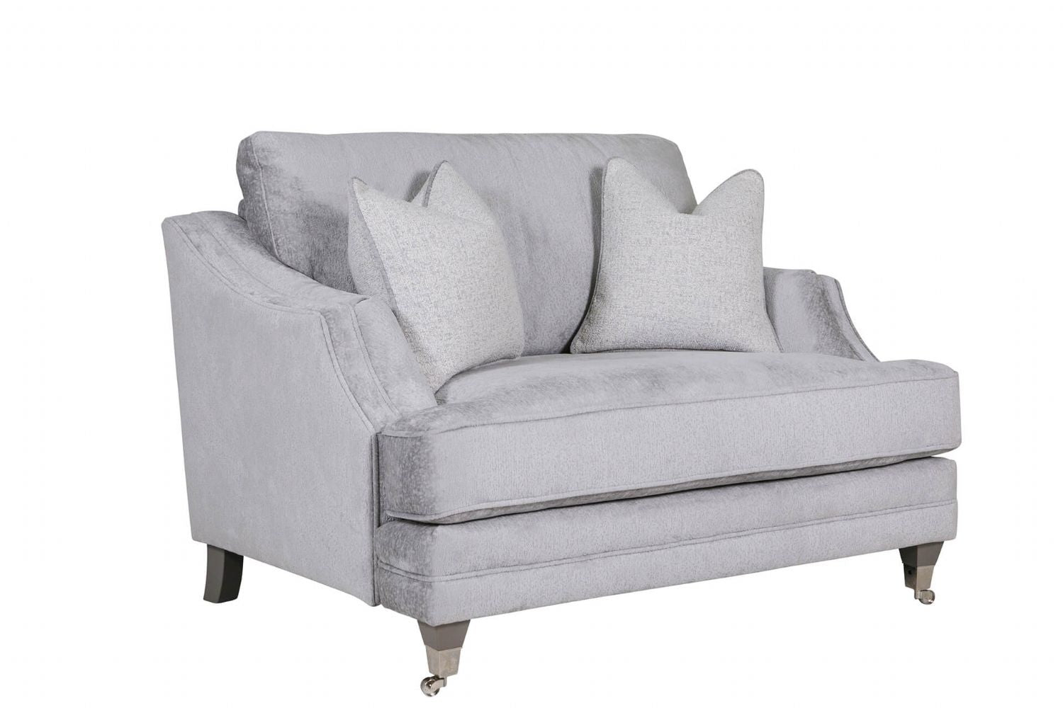 Silver Velvet Fabric 2 Seater Standard Back Snuggle Sofa with Castor Legs
