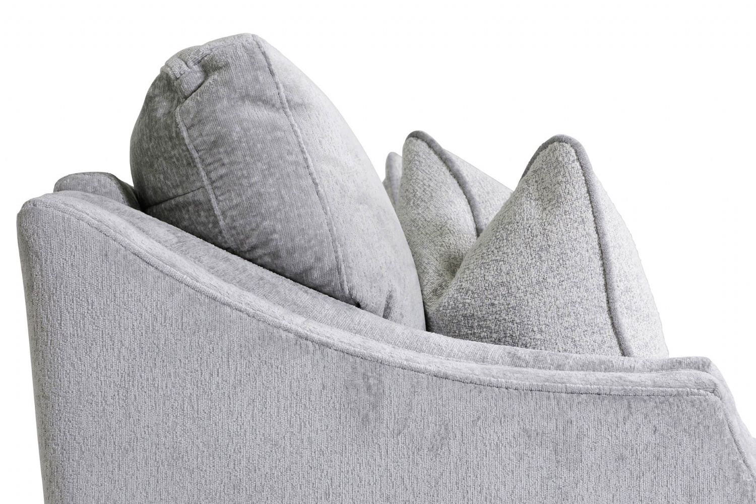 Discover elegance and comfort with the Luxe Silver Sofa, a sophisticated addition to any refined living space. This luxurious sofa features a textured chenille velvet base in warm silver, adding luxury and warmth to your decor. Designed with both style and comfort, it has pocket sprung, foam filled cushions for optimal support, alongside loose back and seat cushions for a customisable lounging experience. The solid wooden frame ensures durability, complemented by sturdy chrome castor legs that add functionality and a classic touch. Self piped seams highlight the sofa's exquisite craftsmanship, while the scatter cushions, made from a blend of boucle and textured fabrics, add depth and visual interest to your living room. This versatile piece, designed with timeless elegance, seamlessly enhances the beauty and comfort of your home.