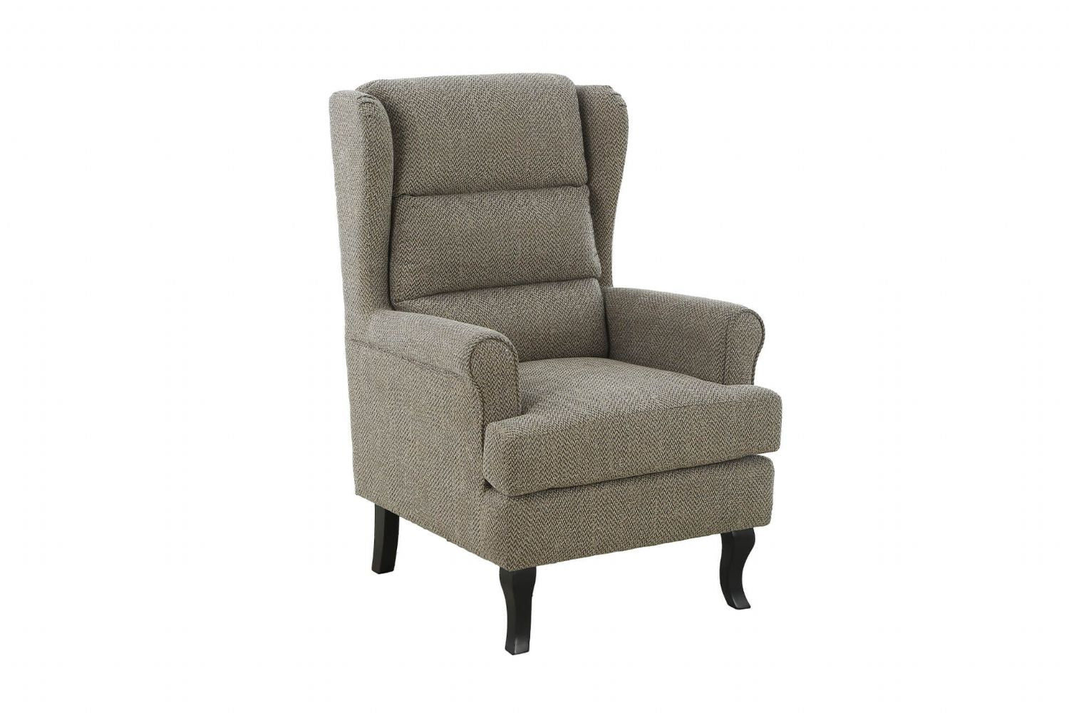 Bertie Accent Chair in Camel brings classic charm to any space with its timeless silhouette and rich herringbone fabric. Featuring black solid wooden legs and loose seat cushions for added comfort and a relaxed look, this chair is both stylish and durable, perfect for adding a warm, inviting touch to your living area or bedroom.