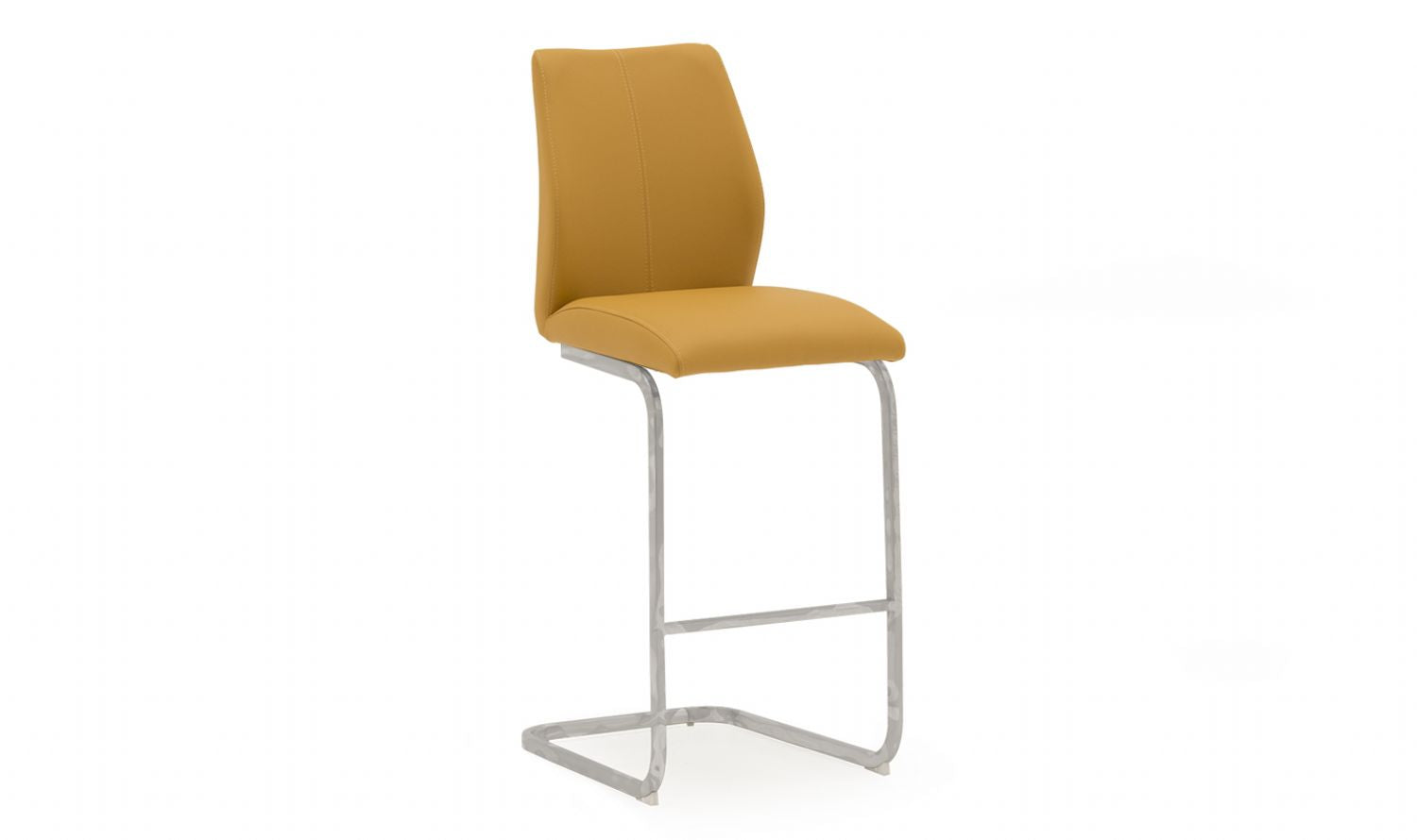 Pumpkin Orange Leather Bar Stool Chrome Cantilever Legs