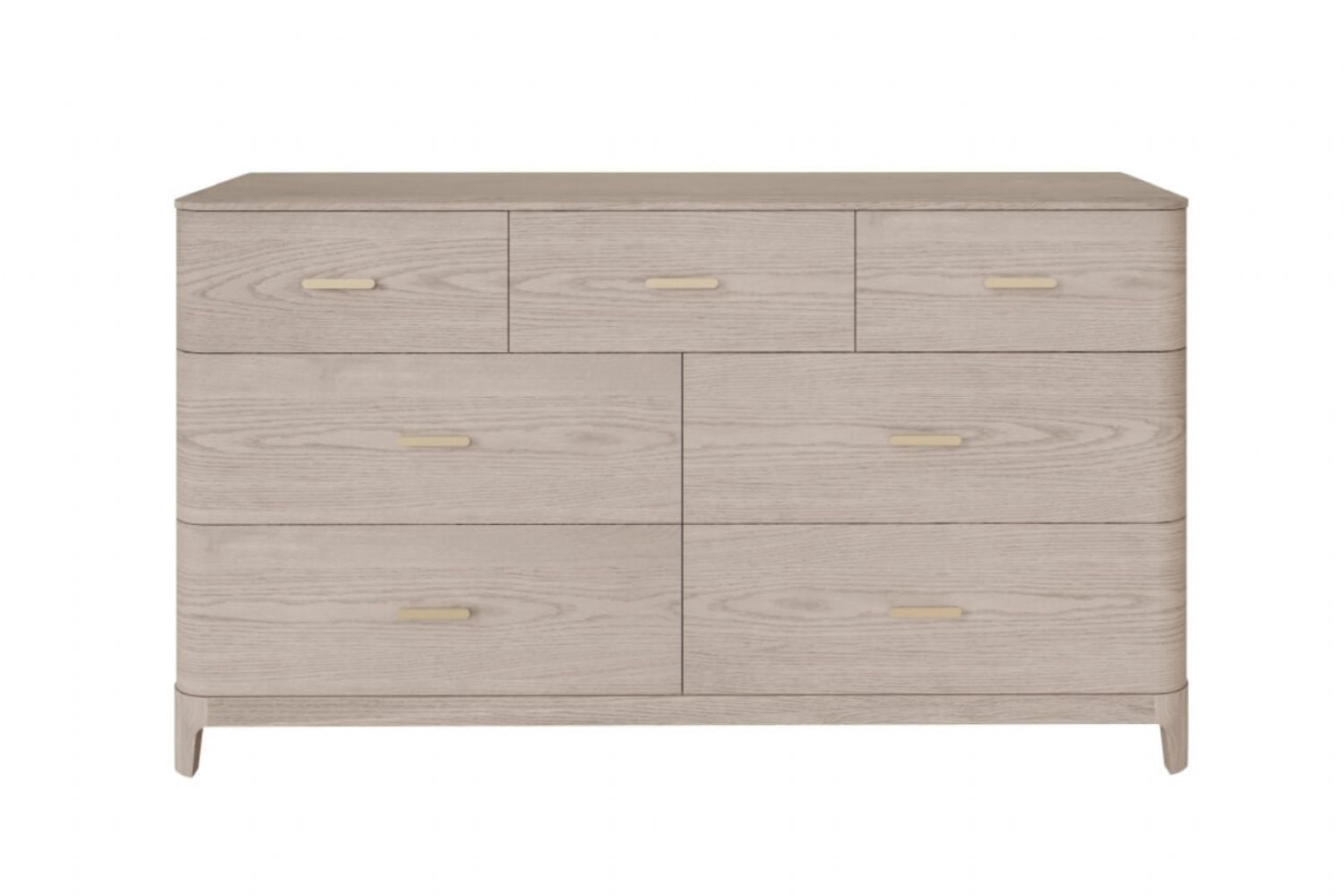 Add timeless elegance to your home with this cream wood wide chest of drawers, featuring seven spacious drawers and soft Art Deco charm. A perfect blend of luxury and functionality, this chest is crafted from rich ash veneer that beautifully showcases the natural wood grain. Its warm Parisian cream tone enhances any interior space, making it a versatile choice for both classic and contemporary bedrooms. Rounded edges and brushed gold metal handles lend an opulent touch, elevating the overall aesthetic. Designed with generous drawer space, this chest is ideal for organising clothing, linens or accessories while serving as a sophisticated statement piece. Whether you’re redesigning your master bedroom or refreshing your guest room, this chest of drawers delivers both practicality and glamour in equal measure.