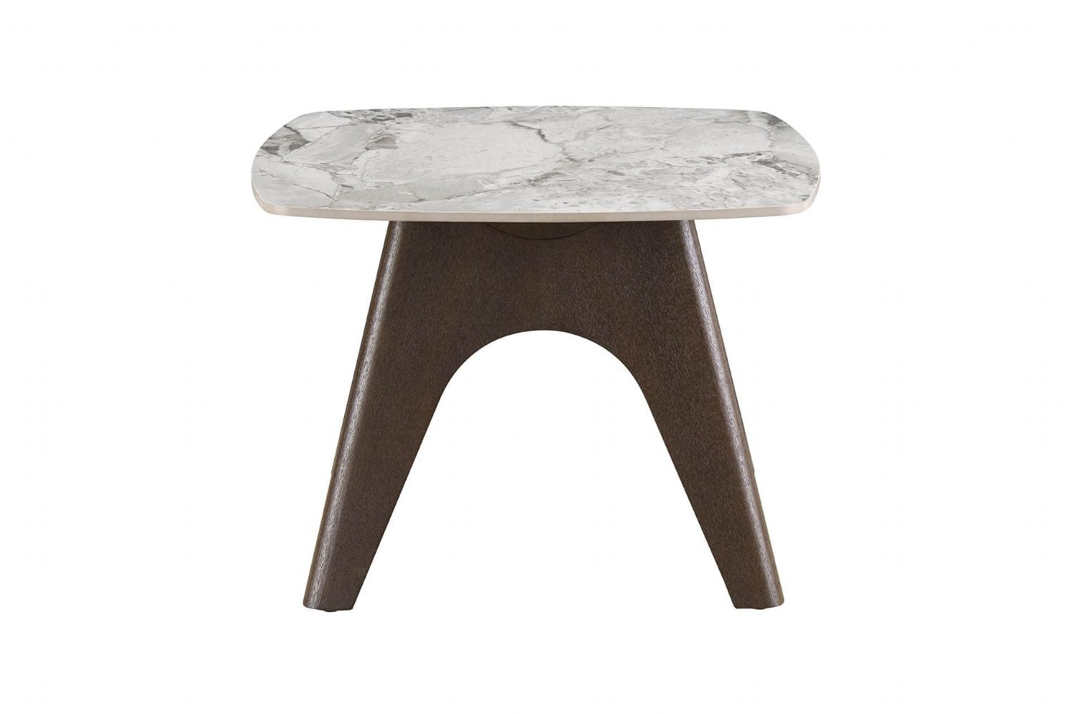 Grey Marble Effect Top Square Lamp Table Smoked Wood Legs