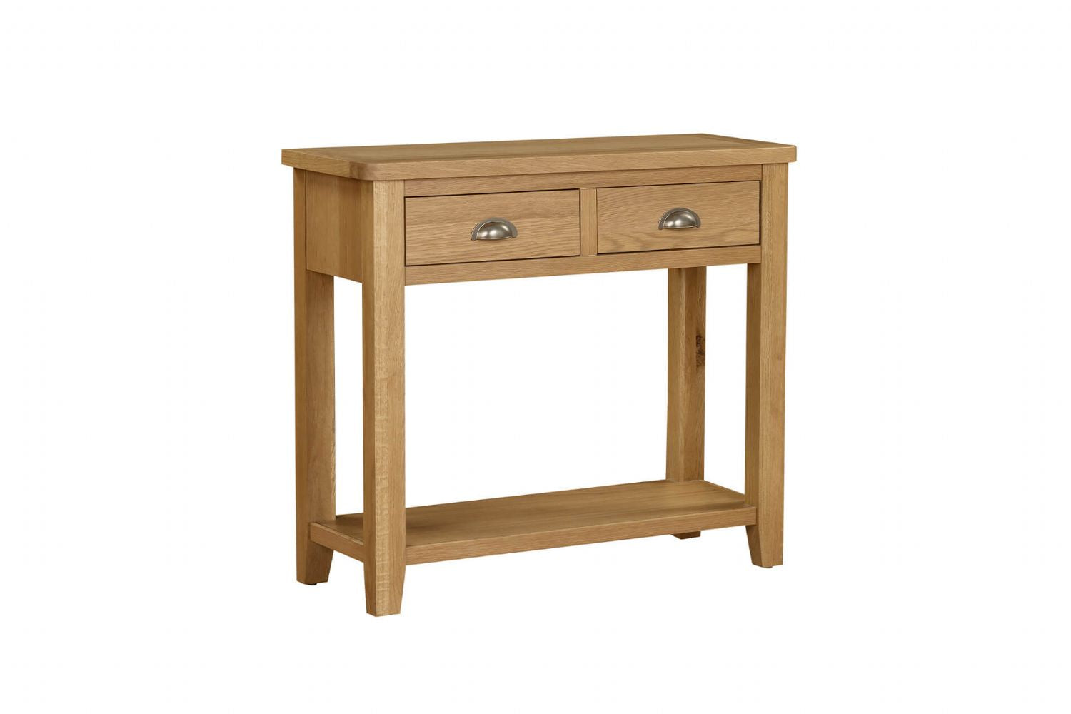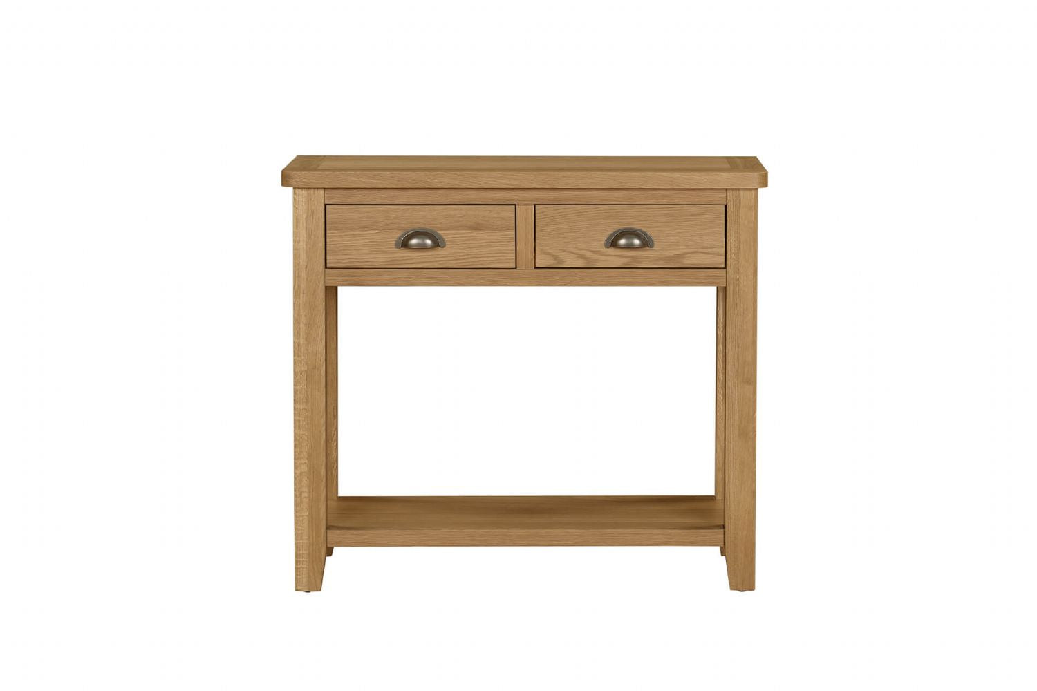 Marsden Console Table in Natural Oak brings a country chic touch to hallways or living areas with its blend of traditional charm and practical design. Crafted with an Oak and Oak Veneer finish, it showcases the natural grain of the wood. Equipped with drawers on traditional wooden runners and finished with classic cup handles, this console table offers functional storage with timeless appeal. Perfect for adding warmth and character to your home.