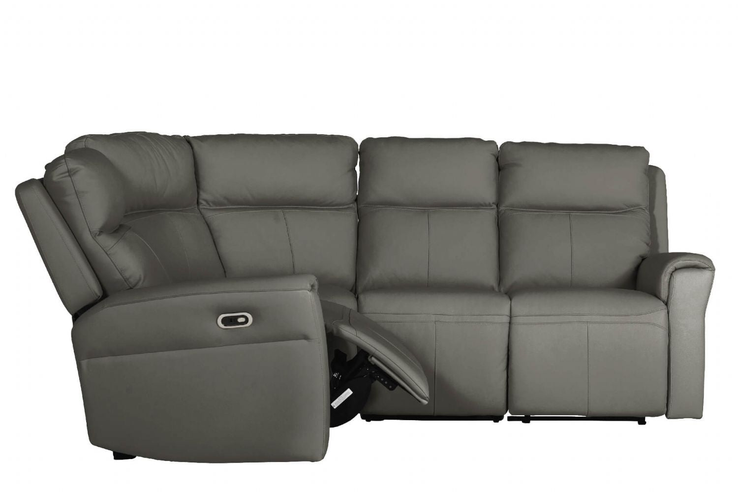 Ash Grey Leather Large Electric Corner Recliner Sofa