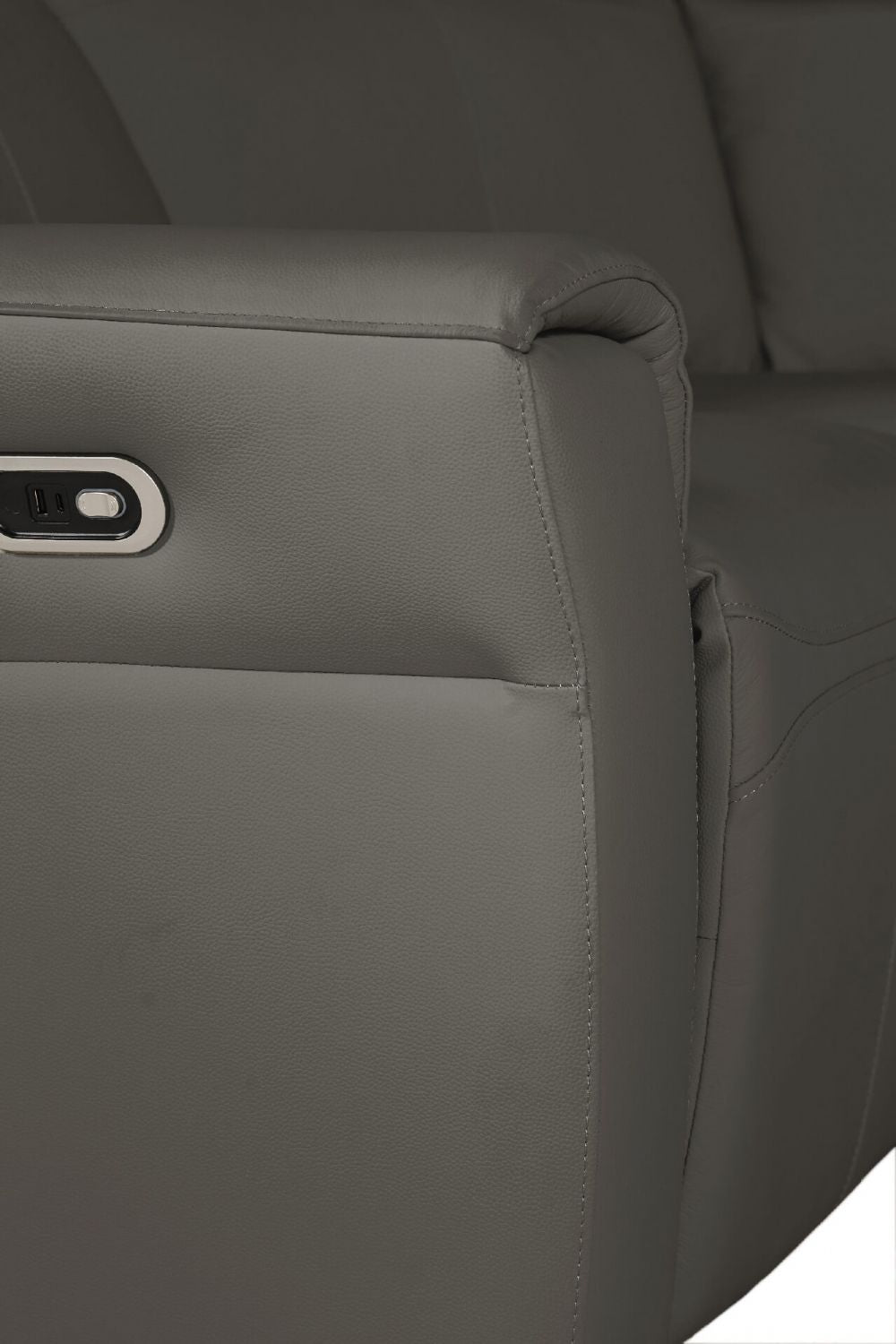Ash Grey Leather Large Electric Corner Recliner Sofa with USB Charging