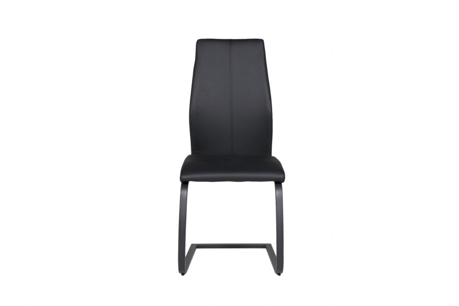 With drama and sophistication in abundance, this trendy cantilever dining chair is upholstered in black faux leather that suits any modern decorated dining room interior. The dining chair features powder coated black metal cantilever legs with a curved design that offers flexibility and practicality in tune with today's lifestyles. Creating an impression instantly, this stand-alone dining room chair would look great in any environment, dining room, lounge space and home-office setting for its modern, bold, gorgeous and eclectic look.