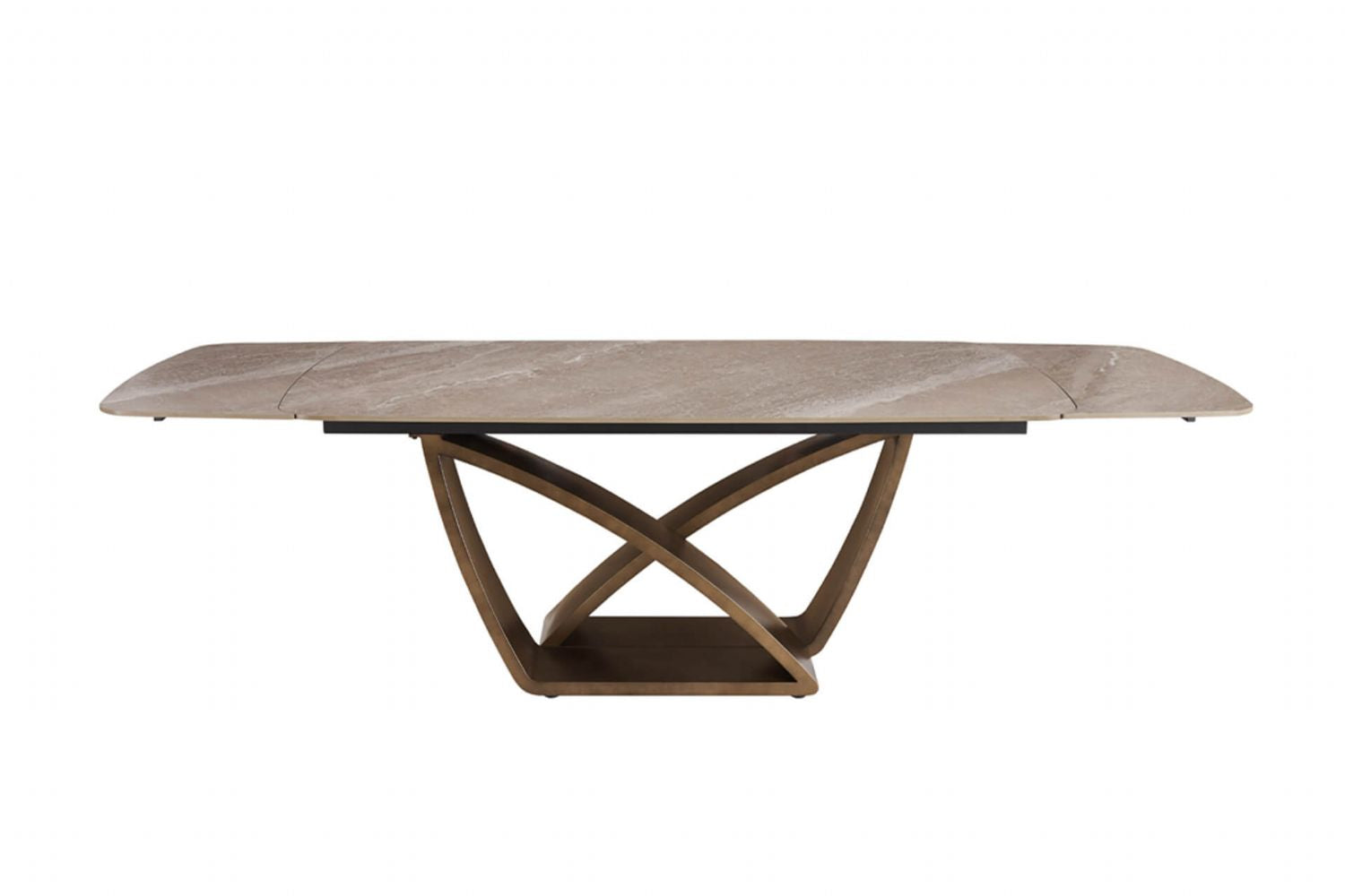 Enhance your dining experience with this brown sintered stone rectangular extending dining table, designed for both elegance and practicality. Perfect for modern dining rooms, this versatile table easily adapts from intimate family meals to larger gatherings with its smooth extending mechanism. The sintered stone top offers exceptional durability, being water repellent, scratch resistant, stainproof, and non porous, making it ideal for busy homes. Supported by a robust metal frame with solid wood accents, this table combines strength and style for long lasting use. Its rich brown finish brings warmth to any dining setting, while the sleek rectangular design creates a sophisticated focal point. Easy to maintain and built to impress, this extending table is a perfect blend of function and style.