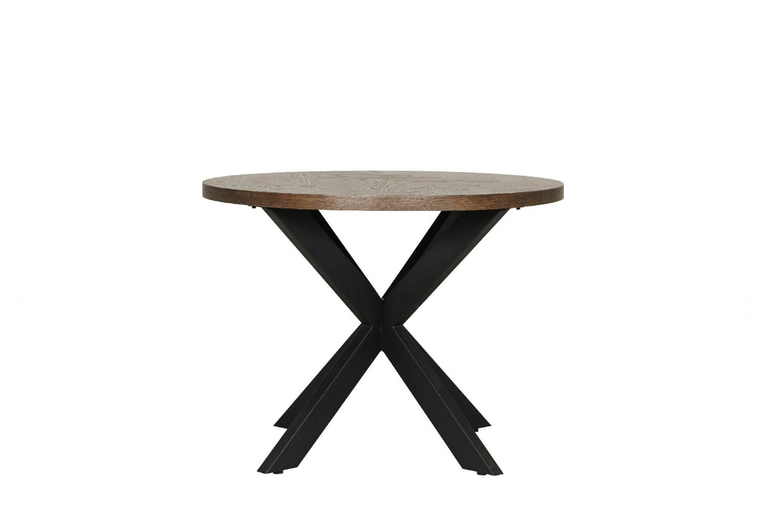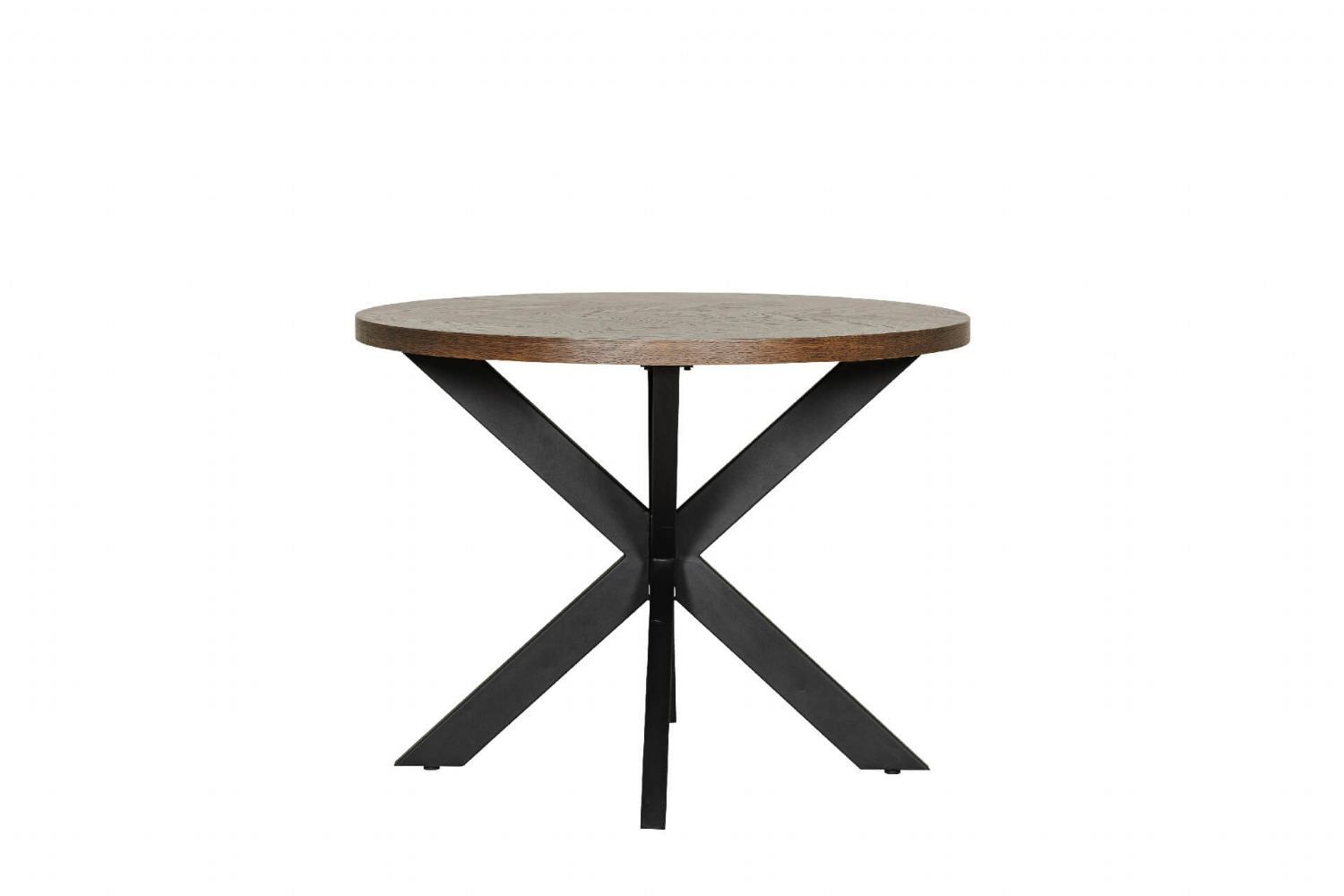 Smoked Oak Round Dining Table Metal Cross Legs 100cm