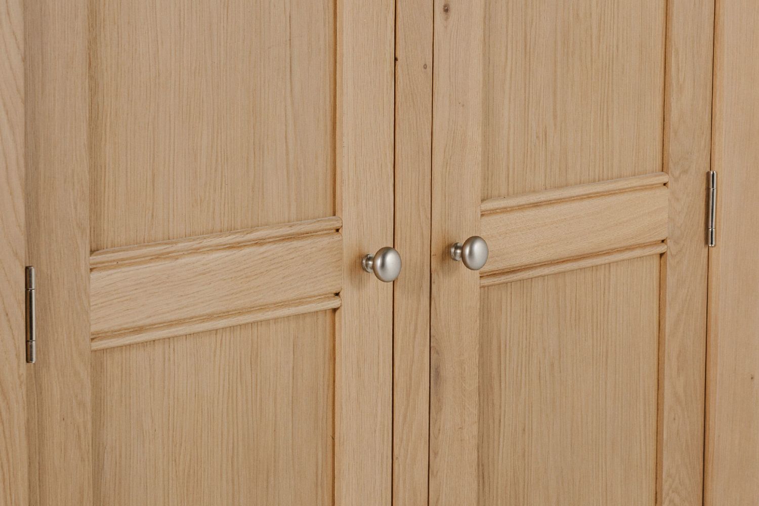 Enhance your bedroom storage with the oak wooden wardrobe with 2 doors and sleek metal handles. Combining timeless charm with modern practicality, this wardrobe features a traditional silhouette that suits both classic and modern interiors. Crafted from sturdy wood and finished in a warm oak tone, it offers a refined and natural appearance that complements any room decor. The tall frame provides generous storage space, including a full length hanging rail ideal for coats, dresses and suits. Smooth opening doors are fitted with durable metal handles that add a touch of modern flair while ensuring everyday functionality. Whether used in a master bedroom, guest room or dressing area, this piece offers style and storage in equal measure. Its reliable build and thoughtful design make it a lasting addition to your home furniture collection.