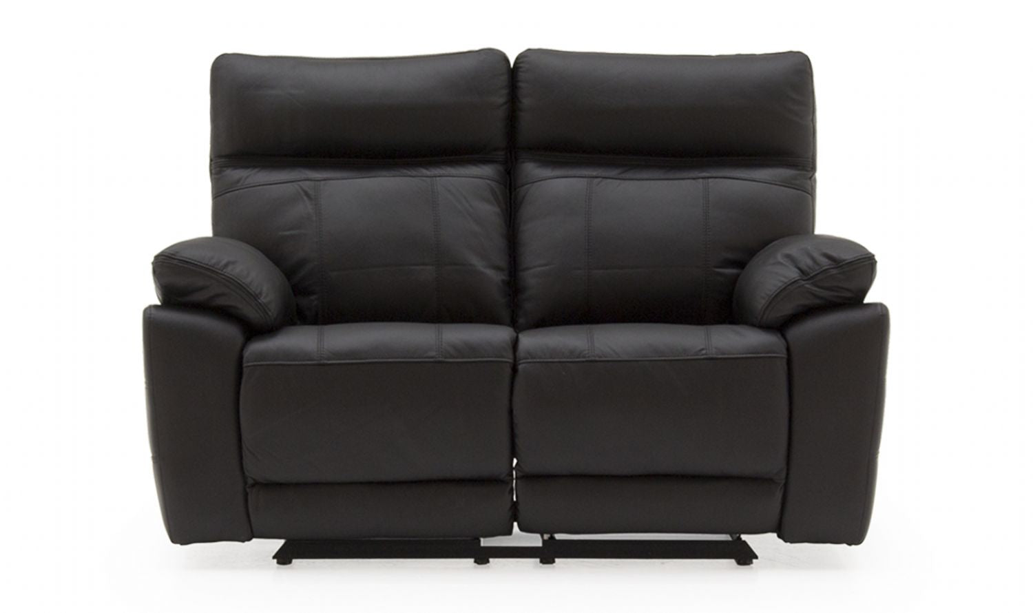 Black Leather 2 Seater Modern Manual Recliner Sofa