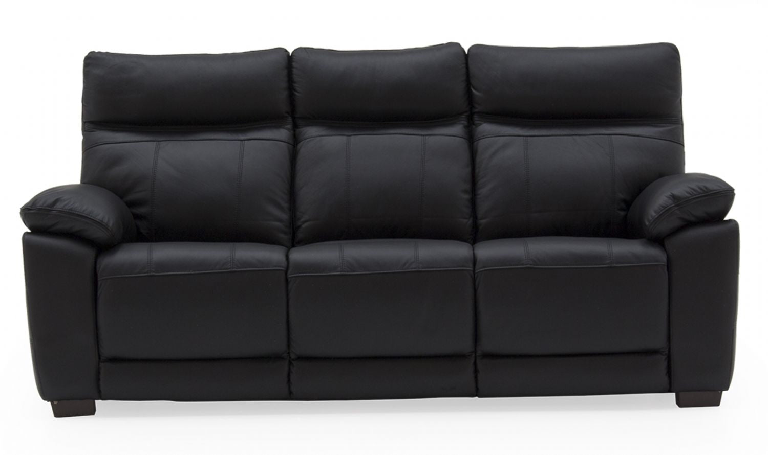 Black Leather Upholstered 3 Seater Sofa with Padded Armrests and Lumbar Support