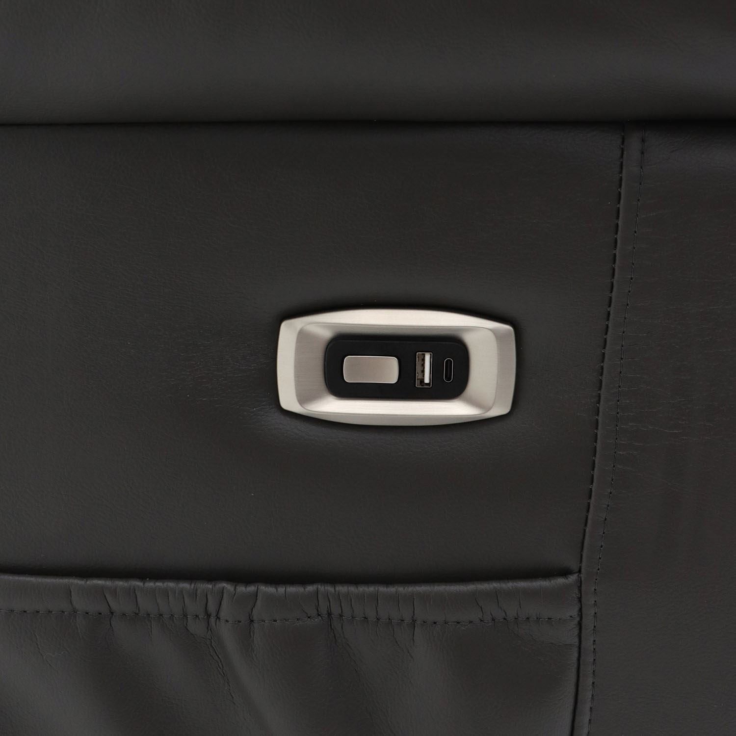 Add modern comfort and convenience to your living space with this grey faux leather armchair, designed with an electric recliner mechanism for effortless relaxation. Upholstered in soft yet durable faux leather, it combines style with practicality, making it perfect for everyday use. The armchair features generously padded armrests, a supportive backrest and a deep seat to ensure maximum comfort. A built-in USB C charging port allows you to charge your devices with ease, while a drop-down table with cup holders keeps your essentials close at hand. For added practicality, a side pocket is included for storing magazines, remote controls and other accessories. With a sturdy frame and a maximum weight capacity of 150 kg per seat, this chair is built to last. Whether placed in a living room, bedroom or snug, it provides a blend of style and function that enhances any home interior.
